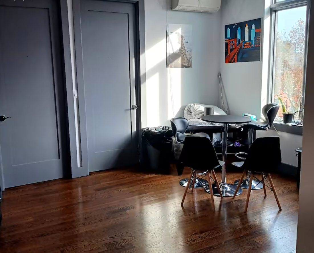 A cozy suite in the heart of Brooklyn, just 25 min from Manhattan. This full-service building features a rooftop terrace with stunning views, a gym, and laundry.